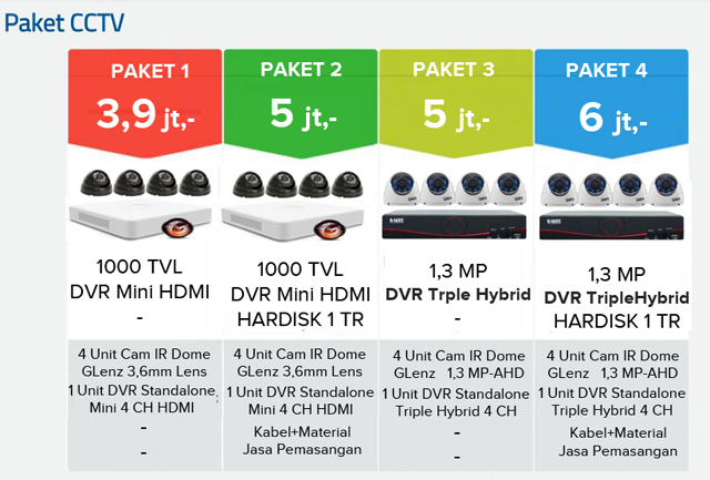Fitur paket cctv G-LENZ murah 4 camera :